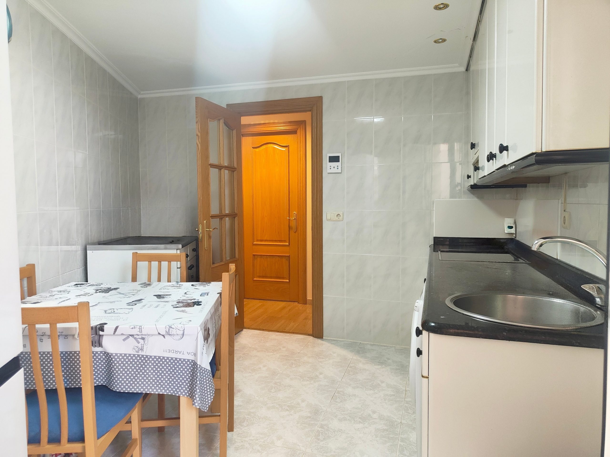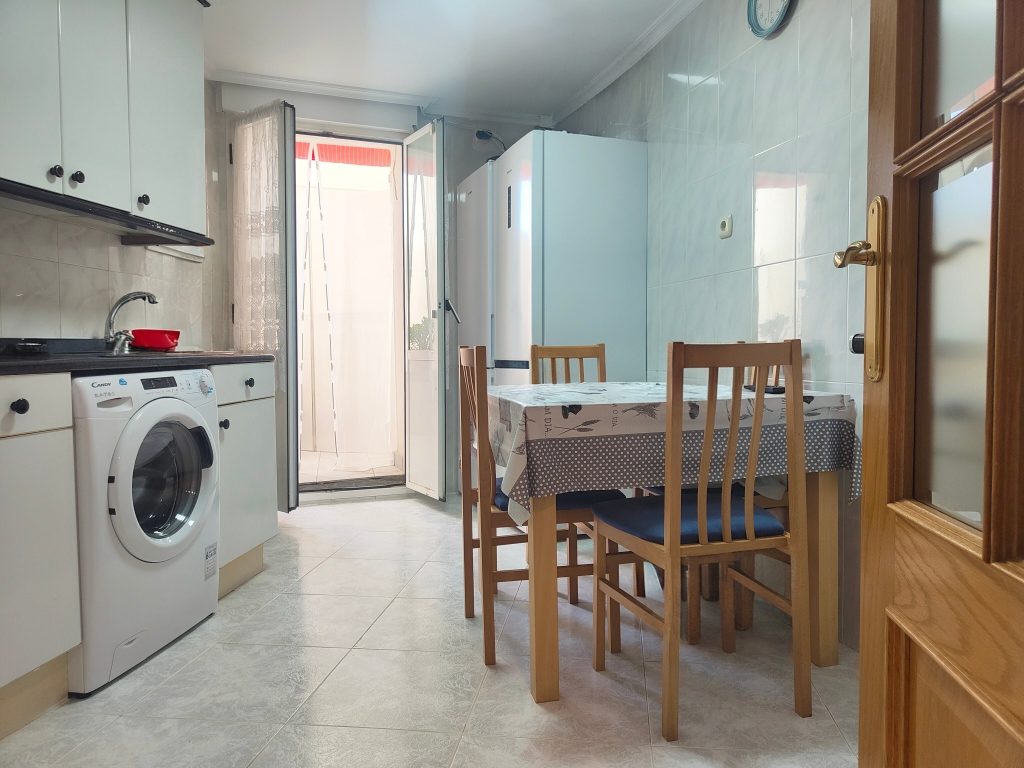 La vivienda dispone de tres habitaciones amplias con armarios empotrados, un baño completo y cocina amplia completamente equipada con electrodomésticos, con acceso directo a un patio privado, un espacio muy práctico para zona de lavado o almacenamiento.